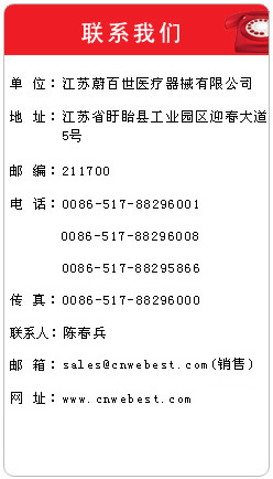 聯系人:陳春兵 地址:江蘇省盱眙縣工業園區迎春大道5號 郵編:211700 互聯網藥品信息服務資格證書號:(蘇)-非經營性-2023-0029 醫療器械投拆舉報電話:12315 電話:0086-517-88296001 88296008 0086-517-88295866 傳真:0086-517-88296000 網址:www.cnwebest_com.c503.cn E-mail:sales@cnwebest_com.c503.cn(銷售) 后臺管理 郵箱登錄 備案號:蘇ICP備17002214號-1 |
